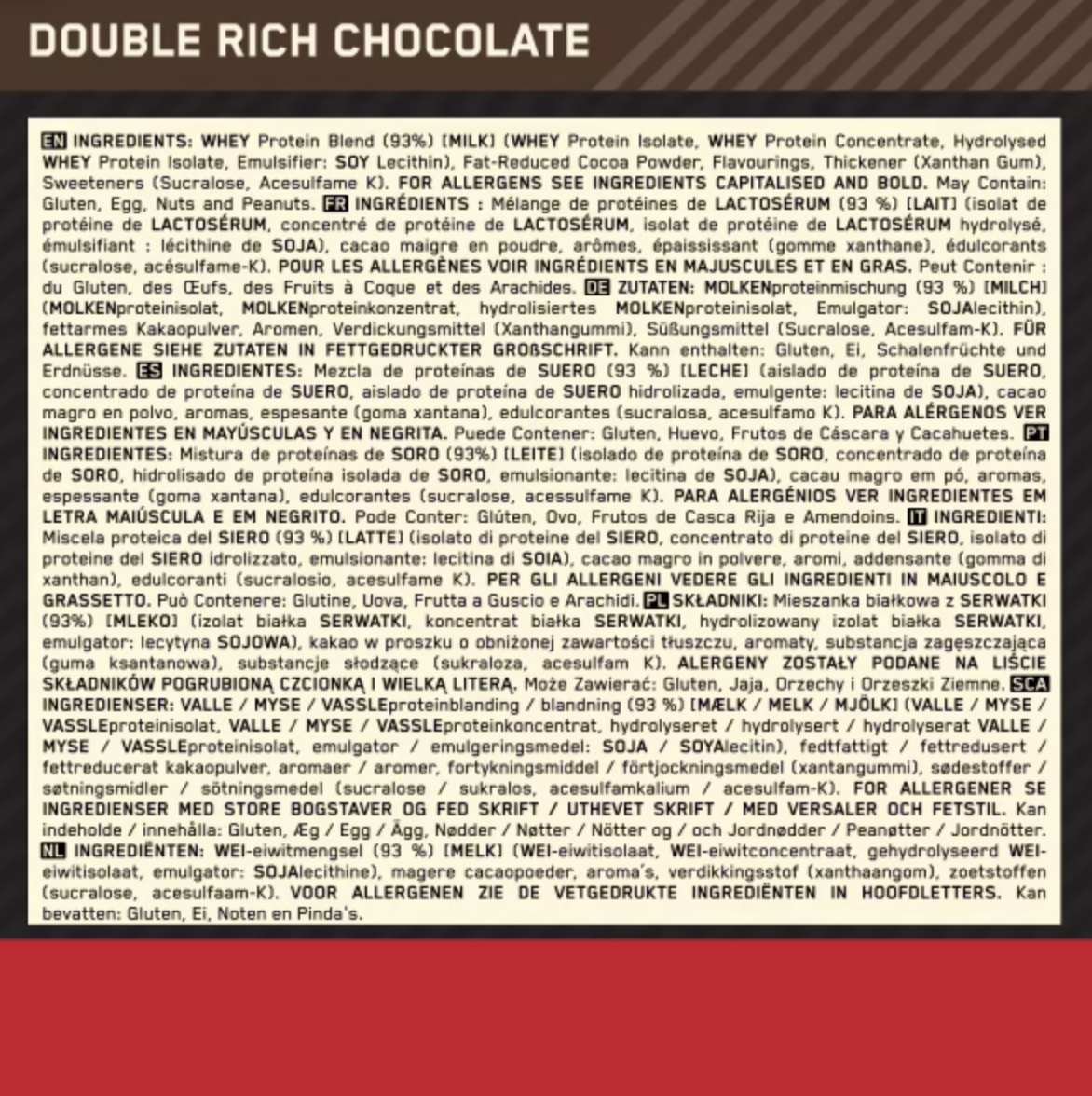 -Le Gold Standard 100% Whey contient des Isolats de Protéines de Lactosérum et du Concentré de Protéines de Lactosérum. Après l’entraînement, votre corps utilise des protéines pour favoriser la réparation et la reconstruction des fibres musculaires.