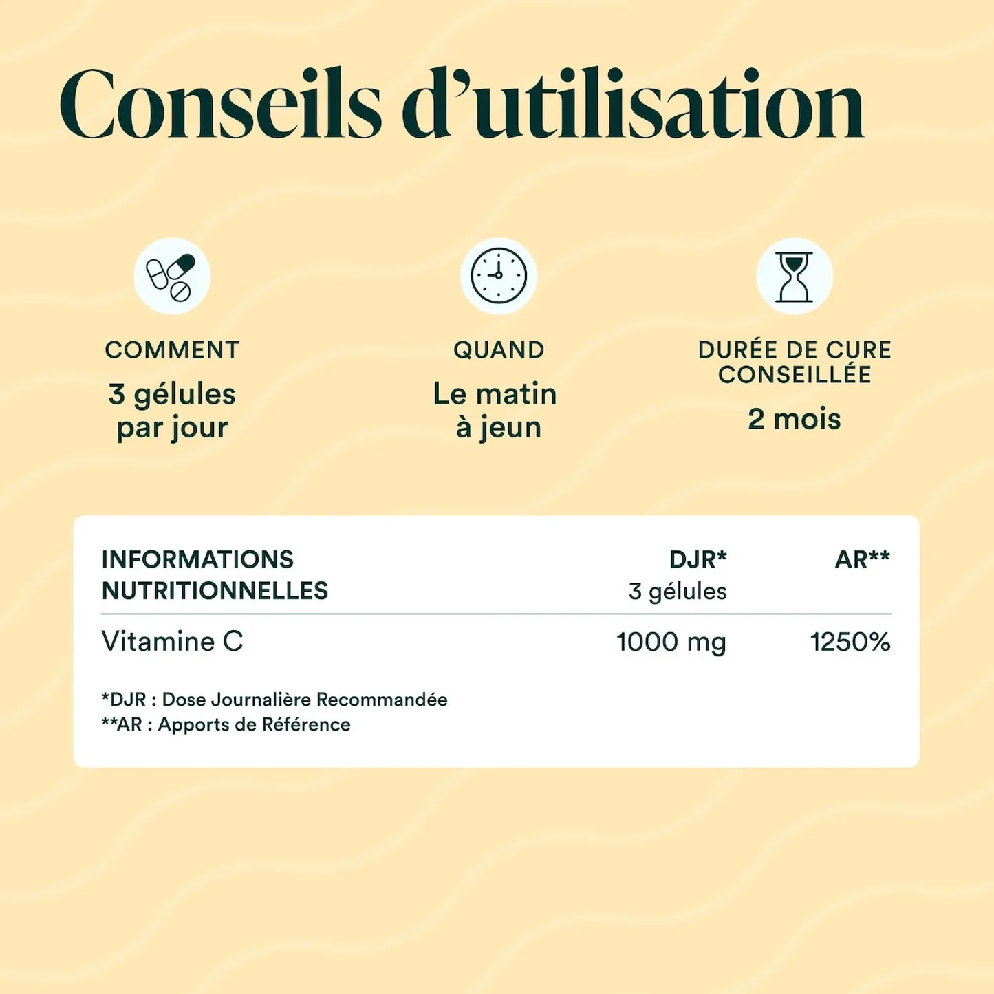 1000 mg par dose journalière (3 gélules)